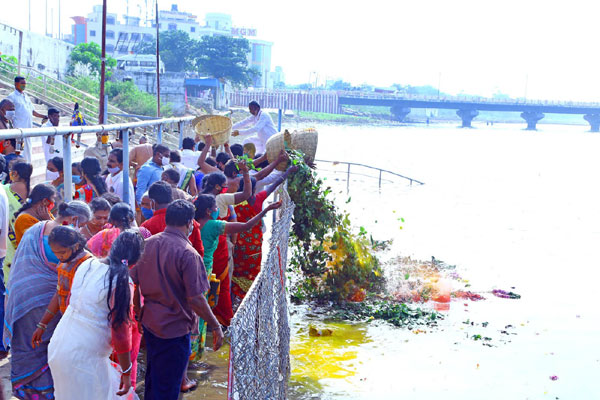 శ్రీకాళహస్తి, డిసెంబరు 14: శ్రీకాళహస్తీశ్వరాలయంలో సోమవారం అష్టోత్తర శత కలశాభిషేకం పూజలు ఆగమోక్తంగా జరిగాయి. కార్తీక మాసోత్సవాన్ని పురస్కరించుకుని ఈ నెల 4వతేదీ నుంచి అలంకార మండపంలో స్వామి, అమ్మవార్లకు లక్ష బిల్వ, లక్ష కుంకుమార్చన నిర్వహించారు. ఆదివారంతో ఈ పూజలు ముగియడంతో సోమవారం అష్టోత్తర శత కలశాభిషేకం చేశారు. తొలుత స్వామివారి గర్భాలయం ముందు కలశాలు స్థాపించి ప్రత్యేక పూజలు నిర్వహించారు. హోమపూజలు చేసి పూర్ణాహుతి సమర్పించారు. అన్నం కుంభం వేశారు. కలశాలకు ఆఖండ హారతి సమర్పించారు. తర్వాత కలశాలను ఆలయంలో ఊరేగించి స్వామి, అమ్మవార్ల మూలవిరాట్లకు కలశ జలంతో అభిషేకం, పూజలు చేశారు. కుంభం వేసిన నైవేద్యాన్ని భక్తులకు పంపిణీ చేశారు. అనంతరం స్వామి, అమ్మవార్ల అర్చనకు ఉపయోగించిన బిల్వపత్రాలు, కుంకుమతో మంగళ వాయిద్యాలు, మేళ తాళాల మధ్య ఊరేగింపుగా ఆలయం నుంచి దక్షిణ గాలిగోపురం మీదుగా సన్నిధివీధి నుంచి స్వర్ణముఖినదిలోని స్నానపు ఘట్టాల వద్దకు చేరుకున్నారు. ఇక్కడ బిల్వ, కుంకుమ పూజా సామగ్రికి ప్రత్యేక పూజలు నిర్వహించారు. తొలుత పసుపు, కుంకుమను స్వర్ణముఖి నదిలో కలిపి నదీమ తల్లి హారతి సమర్పించారు. అనంతరం బిల్వ, కుంకుమ పూజా సామగ్రిని నదిలో నిమజ్జనం చేశారు. ఈ కార్యక్రమంలో ఏఈవో హేమమాలిని, ఆలయ ఇన్స్పెక్టరు సుదర్శన్, విజయసారథి, సంబంధం గురుకుల్, కరుణాస్వామి తదితరులు పాల్గొన్నారు.