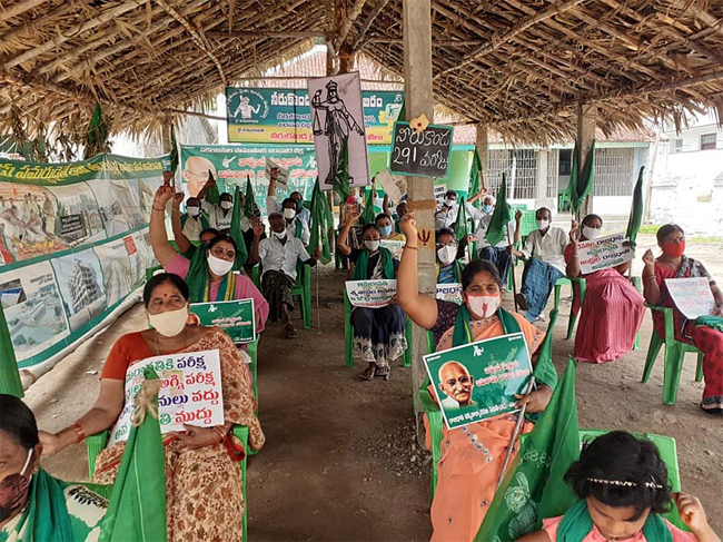 విశాఖలో భూములను అధిక ధరలకు అమ్ముకోవటం కోసం పరిపాలన రాజధానిగా పేరు పెట్టారని ఆరోపించారు. న్యాయమూర్తులను, న్యాయస్థానాలను బెదిరించే విచిత్ర పరిస్థితులు రాష్ట్రంలో నెలకొన్నాయన్నారు. ప్రభుత్వం సలహాదారు అని బోర్డు తగిలించుకున్న సజ్జల రామకృష్ణారెడ్డి ఉన్నత న్యాయస్థానం గురించి మాట్లాడటం విడ్డూరమన్నారు. న్యాయదేవతను గౌరవించటం నేర్చుకోవాలని హితవు పలికారు. అమరావతిని ఏకైక రాజధానిగా ప్రకటించాలని కోరుతూ మంగళగిరి మండలం కృష్ణాయపాలెం, యర్రబాలెం, నవులూరు, బేతపూడి, నిడమర్రు, నీరుకొండ గ్రామాల్లో రైతు సంఘ నేతల ఆధ్వర్యంలో రిలే నిరాహార దీక్షలు కొనసాగాయి.