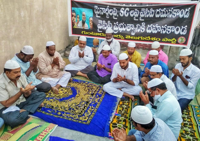 గుంటూరు, నవంబరు 13(ఆంధ్రజ్యోతి): వైసీపీ ప్రభుత్వానికి ముస్లింలు తగిన గుణపాఠం చెప్పి గోరీ కడతారని టీడీపీ జాతీయ అధికార ప్రతినిధి మహ్మద్ నసీర్ అన్నారు. నంద్యాల అబ్దుల్ సలాం కుటుంబానికి అల్లా జన్నత్ ప్రసాదించాలంటూ శుక్రవారం ఆయన పార్టీ నేతలు, మతపెద్దలతో కలసి ప్రత్యేక ప్రార్థనలు నిర్వహించారు. అనంతరం ఆయన మాట్లాడుతూ సలాం కుటుంబం ఆత్మహత్యకు కారుకులైన వారిపై తక్షణమే క్రిమినల్ కేసులు నమోదు చేయాలని డిమాండ్ చేశారు. సలాం కుటుంబానికి సీఎం జగన్ ఆర్థికసాయం అందించి చేతులు దులుపుకోవాలని చూస్తున్నారని మండిపడ్డారు. ఇటువంటి ఘటనలపై ముస్లింలంతా ఒకటికావాలని పిలుపునిచ్చారు. కార్యక్రమంలో నేతలు ఇలాహి, హస్సన్ బాషా, నియాజి షేక్, ఎల్లావుల అశోక్, జమీర్, ఎండీ హఫీజ్, జస్వంత్ జ్యోతుల, అంకమ్మరావు తదితరులతో పాటు ముస్లింపెద్దలు పాల్గొన్నారు.