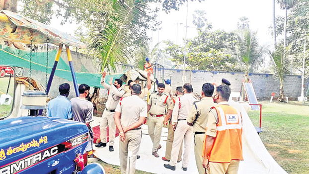 మల్కాపురం, డిసెంబర్ 29 : మతిస్థిమితం లేని ఓ వ్యక్తి సోమవారం రాత్రి సింథియా జంక్షన్ నుంచి షిప్యార్డు మెయిన్ గేటుకు వెళ్లే మార్గంలో ఉన్న ఓ మర్రిచెట్టు చిటారు కొమ్మపై కూర్చుని కలకలం రేపాడు. మల్కాపురం పోలీసులు తెలిపిన వివరాల ప్రకారం ఓ మతిస్థిమితం లేని వ్యక్తి షిప్యార్డు మెయిన్ గేటుకు వెళ్లే మార్గంలోని మర్రి చెట్టుపైకి సోమవారం రాత్రి ఎక్కాడు. ఆ చెట్టు చిటారు కొమ్మపై కూర్చున్నాడు. అయితే అతను మంగళవారం ఉదయం పెద్దగా కేకలు వేస్తుండడంతో స్థానికులు గమనించారు. వెంటనే 100కు డయల్ చేసి సమాచారం ఇచ్చారు. దీంతో మల్కాపురం పోలీసులు సంఘటన స్థలానికి చేరుకుని పరిస్థితిని గమనించారు. నేవల్ డాక్యార్డు, పెదగంట్యాడ అగ్నిమాపక కేంద్రాలకు ఫోన్ చేసి సమాచారం ఇచ్చారు. దీంతో ఆ రెండు కేంద్రాల సిబ్బంది అక్కడికి వచ్చి అగ్నిమాపక శకటంలోని నిచ్చెన సహాయంతో చెట్టు పైకి వెళ్లి అక్కడ ఉన్న వ్యక్తిని జాగ్రత్తగా కిందకు తీసుకొచ్చారు. కిందకు వచ్చిన తరువాత ఆ వ్యక్తి సిబ్బంది నుంచి తప్పించుకునే ప్రయత్నం చేశారు. కానీ సిబ్బంది విడిచిపెట్టకుండా మల్కాపురం పోలీసులకు అప్పగించారు. పోలీసులు అతనిని నగరంలోని మానసిక వైద్యశాలకు తరలించారు. అయితే తాను ఎవరు?, ఎక్కడి నుంచి వచ్చాడు అనే వివరాలను అతను చెప్పలేకపోతున్నాడు. తూర్పు నౌకాదళానికి సమీపంలో ఈ ఘటన చోటుచేసుకోవడంతో అందరిలో భయం నెలకొంది.