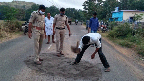 మండల కేంద్రానికి వెళ్లే దారిలో, బుధరాయివలస సమీపంలో ఉన్న గుంతలను మంగళ వారం బుధరాయివలస పోలీసులు పూడ్చారు.