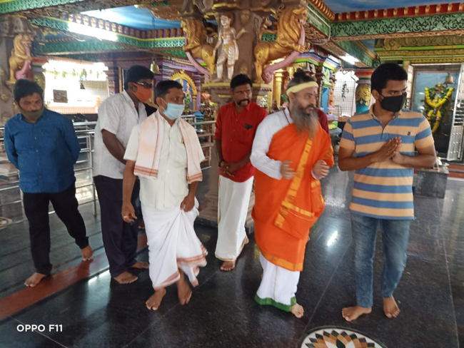 తాడేపల్లిగూడెం, అక్టోబరు 3 (ఆంధ్రజ్యోతి) : హిందూ దేవాలయాలను కాపాడుకోవాలని, దాడులను అరికట్టాలని దత్త పీఠం స్వామీజీ సాయిదత్త నాగానంద సరస్వతి తెలిపారు. తాడేపల్లిగూడెంలోని 17వ వార్డులో ఉన్న విశ్వదుర్గేశ్వరీ సమేత ఆనందేశ్వర స్వామి ఆలయాన్ని శనివారం ఆయన సంద ర్శించారు. విశ్వదుర్గేశ్వరి ఆలయానికి అండగా ఉంటామని స్పష్టం చేశారు. విశ్వదుర్గేశ్వరి మాతను దర్శించుకుంటే కష్టాలు తొలగిపోతాయన్నారు. భగవం తుని పట్ల ప్రతిఒక్కరూ భక్తి శ్రద్ధలు కలిగి ఉండాలని వివరించారు.