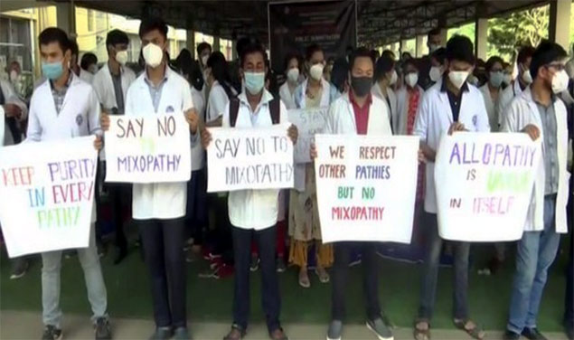 కాగా, ఆయుర్వేద గ్రాడ్యుయేట్లను శస్త్రచికిత్సకు అనుమతిస్తే దేశంలోని ఆరోగ్య పరిరక్షణ రంగంలో అవినీతి చోటుచేసుకుని, అతిపెద్ద తప్పదానికి దారితీస్తుందని ఐఎంఏ జాతీయ అధ్యక్షుడు డాక్టర్ రాజన్ శర్మ తెలిపారు. వైద్యుడు కావాలంటే ఏళ్లకు ఏళ్లు పడుతుందని, మిక్సోపతి వల్ల ఏమి కోరుకుంటున్నారని కేంద్రాన్ని ప్రశ్నించారు. ఆరోగ్యంపై దేశం రాజీపడితే అదొక పెద్ద వైఫల్యమవుతుందని అన్నారు. సమ్మె సందర్భంగా దేశవ్యాప్తంగా వైద్యులు డ్యూటీలో నల్ల రిబ్బన్లు ధరించి సమ్మె పాటించారు.