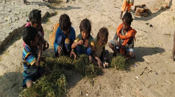 వారణాసి: ప్రధానమంత్రి నరేంద్ర మోదీ నియోజకవర్గంలో దారుణ సంఘటన వెలుగు చూసింది. ఆరుగురు నిరుపేద చిన్నారులు.. తిండి కరువై గడ్డిపై ఉప్పు చల్లుకొని తింటున్న సంఘటన ప్రతి ఒక్కరిని కన్నీరు పెట్టిస్తోంది. వారణాసి సమీపంలోని కోయిరీపూర్ గ్రామంలో బుధవారం కనిపించిందీ దృశ్యం.