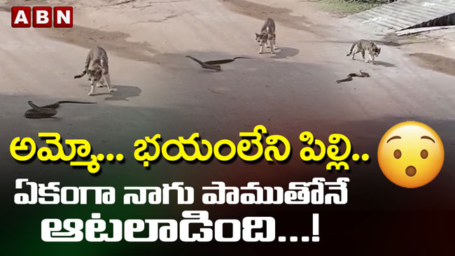 నడిరోడ్డుపై పాము కనిపిస్తే ఎవరైనా సరే ముందుగా భయపడిపోతారు. ఆ తర్వాత పామును పట్టడానికి లేదా చంపడానికి సాహసం చేస్తారు. కానీ ఓ పిల్లి అలా చేయలేదు...