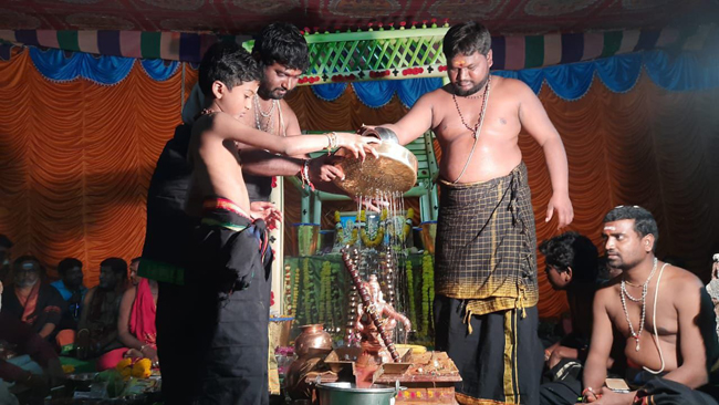 నిర్మల్ టౌన్, డిసెంబరు 30: జిల్లా కేంద్రంలోని చింతకుంట వాడలో అయ్యప్ప స్వామి పడిపూజ మహోత్సవం కన్నుల పండువగా సాగింది. సిద్ధు గురుస్వామి ఆధ్వర్యంలో నిర్వహించిన పడిపూజలో అయ్యప్ప ఉత్సవ విగ్రహనికి పంచామృతాలతో అభిషేకించి ప్రత్యేక పూజలు చేశారు. అనంతరం స్వామికి వివిధ రకాల పూలతో పుష్పార్చన చేశారు. పడిపూజ నిర్వహించిన స్వామి 18వ సారి మలాధారణ స్వీకరించడంతో నిర్మల్ అయ్యప్ప సేవా సమితి ఆధ్వర్యంలో కొబ్బరి చెట్టు, యోగ దండన అందజేసి సత్కరించారు. పూజా కార్యక్రమానికి స్వాములతో పాటు స్థానిక భక్తులు, మహిళలు పెద్ద సంఖ్యలో పాల్గొన్నారు. అయ్యప్పల భజన పాటలతో అక్కడి ప్రాంగణం స్వామివారి నామస్మరణతో మారుమ్రోగింది. ఈ కార్యక్రమంలో కడ్తాల్ గ్రామ ధర్మశాస్త్ర అయ్యప్ప ఆలయ గురుస్వామి నర్సారెడ్డి, చెనిగారపు చిన్నయ్య, మూర్తి, అమ్ముల రాజు, అమ్ముల ధర్మేంద్ర, తదితరులు పాల్గొన్నారు.