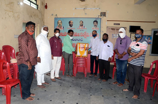 ఆదిలాబాద్ టౌన్, సెప్టెంబరు 9: తెలంగాణ యాస, భాషలకు తన రచనలు, కవితల ద్వారా వన్నె తెచ్చిన వ్యక్తి కాళోజి నారాయణరావు అని బీసీ సంక్షేమ సంఘం సభ్యులు పేర్కొన్నారు. బుధవారం తెలంగాణ ప్రజాకవి, పద్మవిభూషణ్ కాళోజి నారాయణ రావ్ జయంతిని పురస్కరించుకొని తెలంగాణ భాషా దినోత్సవాన్ని జిల్లా కేంద్రంలోని బీసీ సంక్షేమ సంఘ భవనంలో కరోనా నిబంధనలకు అనుగుణంగా నిర్వహించారు. ఈ సందర్భంగా కాళోజి రచనలు, కవితల ప్రాధాన్యతను గుర్తు చేసుకున్నారు. ముందుగా కాళోజి చిత్రపటానికి పూలమాల వేసి నివాళులర్పించారు. ఇందు లో జిల్లా బీసీ సంక్షేమ సంఘం ప్రధాన కార్యదర్శి కోరెడ్డి పార్థసారథి, అసోసియే ట్ అధ్యక్షుడు జగదీశ్వర్, ఉపాధ్యక్షుడు ప్రమోద్కుమార్ఖత్రి, పోతారం నర్సాగౌడ్, సామల ప్రశాంత్, శ్రీపాద శ్రీనివాస్, బండారి దేవన్న తదితరులున్నారు. అటు జిల్లా కేంద్రంలోని ఇందిరా ప్రియదర్శిని మైదానంలో ప్రజాకవి కాళోజి జయంతి నిర్వహించారు. కాళోజి రచనలు, కవితలను స్మరించుకుంటేనే తెలుగుజాతి ప్రజలను ఆయన చైతన్యవంతులు చేసిన విధానాన్ని గుర్తు చేశారు. ఇందులో జిల్లా క్రీడల అభివృద్ధి అధికారి వెంకటేశ్వర్లు, గిరిజన క్రీడల అధికారి పార్థసారథి, తదితరులున్నారు.