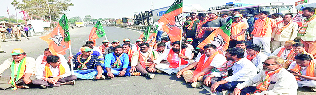 రాష్ట్ర ప్రభుత్వం ఎన్నికలకు ముందు ప్రజలకు ఇచ్చిన హామీలను అమలు చేయాలని డిమాండ్ చేస్తూ మంగళవారం బీజేపీ, బీజేవైఎం ఆధ్వర్యంలో గుడిహత్నూర్లో జాతీయ రహదారిపై రాస్తారోకో చేశారు.