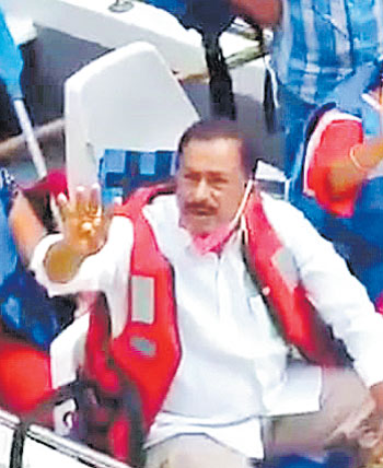 హబ్సిగూడ డివిజన్ లక్ష్మీనగర్లో పరిస్థితిని తెలుసుకునేందుకు గురువారం బోటులో అధికారులతో కలిసి వెళ్లిన ఉప్పల్ ఎమ్మెల్యే భేతి సుభా్షరెడ్డికితో ముంపు ప్రాంత