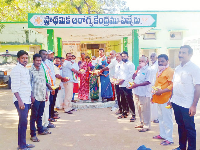 పెబ్బేరు/ రేవల్లి: సోనియాగాంధీ జన్మదినం సందర్భంగా ప్రాథమిక ఆరోగ్య కేంద్రంలో రోగులకు పాలు, పండ్లు, బ్రేడ్లు పంపిణీ చేశారు. అక్కి శ్రీనివాస్గౌడ్, విజయవర్దన్రెడ్డి, సురేందర్గౌడ్, సత్యం, దయాకర్రెడ్డి, షకీల్, యుగంధర్రెడ్డి, రణధీర్రెడ్డి, చంద్రశేఖర్, రాములు, సర్వేష్, సాయిగౌడ్, జగదీష్ తదితరులు పాల్గొన్నారు.రేవల్లి మండలంలో సోనియా గాంధీ జన్మదిన వేడుకలను కాంగ్రెస్ పార్టీ నాయకుడు వాడల పర్వతాలు ఆధ్వర్యంలో ఘనంగా నిర్వహించారు. అనంతరం ఆస్పత్రిలోని రోగులకు పండ్లు, బ్రెడ్లు పంపిణీ చేశారు. ఎంపీటీసీ అంజనమ్మ, రాములు, మన్నూరు నరసింహ, కావలి వెంకటేష్ పాల్గొన్నారు.