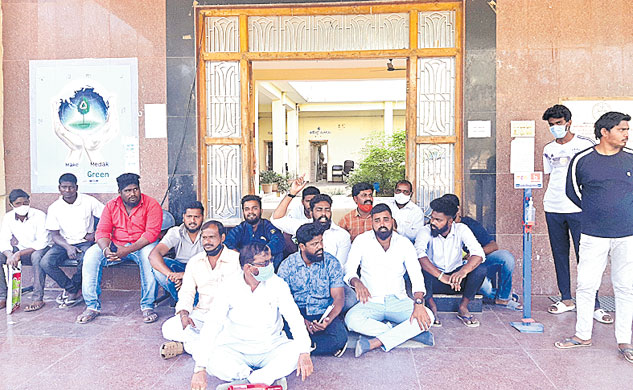 మెదక్ మున్సిపాలిటీ, డిసెంబరు 28 : బస్టాండ్ సమీపంలో అత్యంత విలువైన రెండు దుకాణాలను బహిరంగ వేలం వేయకుండా అక్రమ దారిలో కేటాయించడంపై యువజన సంఘాల నాయకులు సోమవారం మెదక్ మున్సిపల్ కార్యాలయం ఎదుట బైఠాయించారు. ముందుగా దరఖాస్తు చేసుకున్న దళితులకు గానీ, నిరుద్యోగులకు గానీ అవకాశం కల్పించకుండా ఓ పార్టీ నేతకు దుకాణాలను కేటాయించడంపై మండిపడ్డారు. మున్సిపల్ అధికారులు ప్రతిపాదన కలెక్టర్ గారికి పంపడంతోనే ఆయన ఉత్తర్వులు జారీ చేశారని విమర్శించారు. దుకాణం కేటాయించిన వ్యక్తికి సంబంధించిన వివరాలు కలెక్టర్కు ఎలా తెలుస్తాయని మున్సిపల్ అధికారుల అక్రమాలతోనే జరిగిందని ఆగ్రహం వ్యక్తం చేశారు. నిరుద్యోగులకు కేటాయించాల్సిన దుకాణాలను ఓ ప్రజాప్రతినిధి అప్పగించడాన్ని తీవ్రంగా ఖండిస్తున్నట్లు తెలిపారు. ఇందుకు బాధ్యులైన అధికారులపై చర్యలు తీసుకోవాలని డిమాండ్ చేశారు. మున్సిపల్ కమిషనర్ శ్రీహరి డీఈ మహే్ష ఫోన్ ద్వారా యువజన సంఘాల నాయకులతో మాట్లాడి ఈ విషయాన్ని కలెక్టర్ దృష్టికి తీసుకెళ్తామని హామీ ఇవ్వడంతో ఆందోళన విరమించారు. ఈ కార్యక్రమాల్లో దళిత, యువజన సంఘాల నాయకులు రామస్వామి, బీముడు, బాలరాజు, భరత్గౌడ్, అమీర్, మన్సూర్అహ్మద్, సుశీల్, జక్కుల శేఖర్, జక్కుల రాజు, గుండు తదితరులు పాల్గొన్నారు.