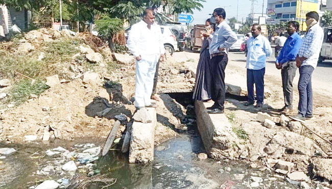 కీసర రూరల్: వరదలకు దెబ్బతిన్న రోడ్లను వెంటనే మరమ్మతు చేయించాలని నాగారం మున్సిపల్ అధికారులను అదనపు కలెక్టర్ జాన్ శాంసన్ ఆదేశించారు. గురువారం ఆయన నాగారం మునిసిపాలిటీలో పర్యటించారు. వర్మి కంపోస్ట్ యూనిట్ను, వరదలకు దెబ్బతిన్న రోడ్లను ఆయన పరిశీలించారు. రాంపల్లి చౌరస్తా వద్దనున్న పెట్రోల్పంపు వద్దనున్న నాలాను ఆయన పరిశీలించారు. దుర్వాసన వెదజల్లుతూ, మురుగు పారుతున్నా ఎలాంటి చర్యలు తీసుకోకపోవటంపై ఆయన అసహనం వ్యక్తం చేశారు. అనంతరం మున్సిపల్ కార్యాలయంలో చైర్మన్ చంద్రారెడ్డి, కమిషనర్ వాణి, ఇంజనీరింగ్ అధికారులతో సమావేశమయ్యారు. హరితహారంలో భాగంగా నాటిన మొక్కల సంరక్షణకు చర్యలు తీసుకోవాలని సూచించారు. ఈ కార్యక్రమంలో కౌన్సిలర్ బిజ్జ శ్రీవా్సగౌడ్, తదితరులు పాల్గొన్నారు.
