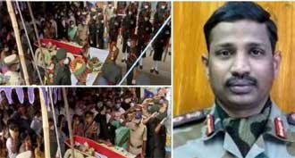 కాగా కల్నల్ సంతోష్బాబు స్వస్థలం సూర్యాపేట కన్నీటి సంద్రంలో మునిగిపోయింది. పట్టణంలోని వ్యాపారులు, స్వచ్చంధంగా బంద్ పాటిస్తున్నారు. అంతుకుముందు సంతోష్బాబు ఇంటివద్ద ఆయన పార్ధివదేహానికి మంత్రి జగదీశ్ రెడ్డి, ఎంపి కోమటిరెడ్డి వెంకట్ రెడ్డి, బీజేపీ రాష్ట్ర అధ్యక్షుడు బండి సంజయ్, మండలి ఛైర్మన్ గుత్తా సుఖేందర్ రెడ్డితోపాటు పలువురు ప్రముఖులు నివాళులర్పించారు. సంతోష్ బాబు అమర్ రహే అంటూ అంతిమయాత్ర ప్రారంభమైంది. యాత్ర వెంబడి రోడ్డుకు ఇరువైపులా ప్రజలు నిలబడి వీర సైనికుడికి నివాళలర్పిస్తున్నారు. పూల వర్షం కురిపిస్తున్నారు. సంతోష్ కుమార్ అంత్యక్రియలకు అన్ని ఏర్పాట్లు జరిగిపోయాయి.