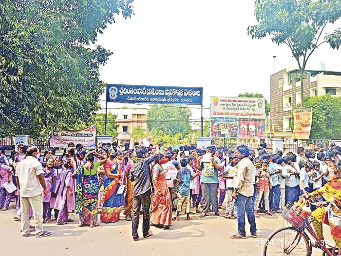 భీమవరంలో విద్యార్థులు, తల్లిదండ్రుల ఆందోళన