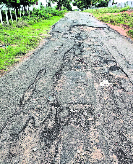 అడుగుకో నీటికుంటను తలపిస్తున్న చెరువుకట్ట రోడ్డు