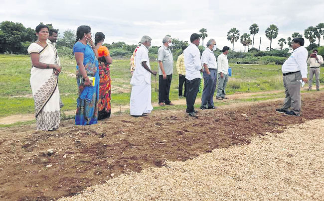 ధర్మవరంరూరల్, జూన్18: మల్చింగ్ పద్ధతిలో పంటలు సాగు చేస్తే భూమిలో తేమశాతం ఎక్కువ రోజులు ఉండటంతో పాటు కలుపు ను నివారించవచ్చుని రాష్ట్ర రైతుసాఽధికారిక సంస్థ చైర్మన్ విజయ్కుమార్ పేర్కొన్నారు. ఆదివారం మండలపరిధిలోని చిగిచెర్ల గ్రామంలో మల్చిం గ్ పద్ధతిలో సాగుచేసిన పంటలను జిల్లా డీపీఎం లక్ష్మానాయక్తో కలిసి పరిశీలించారు. ఈ సందర్బంగా వారు రైతులతో మాట్లాడుతూ ప్రకృతి వ్యవసాయంతో పంటలు సాగుచేసే అధిక దిగుబడులు వచ్చి భూమి సారవంతంగా ఉంటుందన్నారు. ఈ విధానంతో పంటలు సాగుచేస్తే ఒక పంట నష్టం వచ్చిన మరోక్కపంట రైతుకు ఆదాయాన్ని చేకూరుతుం దన్నారు. ఈ మల్చింగ్తో భూమిలో తేమశాతం కూడా అధిక రోజులు ఉంటుంది. అదేవిధంగా పంటలసాగుకు ఘన, ద్రవ, జీవామృతం వేయడం వల్ల భూములు సారవంతం పెరిగి అధిక దిగుబడులు వచ్చేందుకు దోహదపడుతున్నారు. రైతులు ఖరీఫ్లో సాగుచేసే వేరుశ నగ, కంది, నవధాన్యలు పంటలను ప్రకృతి సేద్యంతో సాగుచేసి ఆరోగ్య కరమైన పంటలను పండించుకోని భూములు సారవంతంగా ఉంటా యని సూచించారు. కార్యక్రమంలో ఎస్ఆర్పీ భానుమతి, కన్సెల్టెంట్ సురేంద్రరెడ్డి, ఏఓ ప్రవీణ్కుమార్, జిల్లా యాంకర్ రవిచంద్ర, ఎస్డీఏ చెన్నమ్మ, ఐబీఎస్డీఏ వేణి, ఐసీఆర్పీలు రామాంజినేయులు, ఆనంద్, రమణ, రైతులు పాల్గొన్నారు.