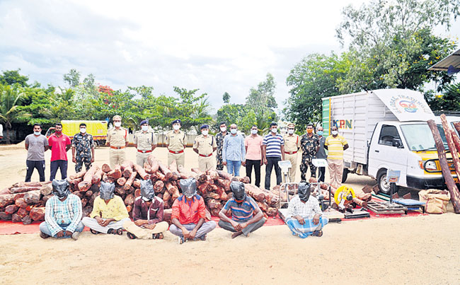 చిత్తూరు: తమిళనాడులో నిల్వ ఉంచిన భారీ ఎర్రచందనాన్ని చిత్తూరు పోలీసులు పట్టుకున్నారు. వాహనాలతో కలిపి వీటి విలువ రూ.10.25 కోట్లు ఉంటుంది. ఈ వివరాలను వివరాలను ఎస్పీ సెంథిల్కుమార్ గురువారం విలేకరులకు వెల్లడించారు. గుడిపాల మండలంలోని గొల్లమడుగు శ్యాండ్ చెక్పోస్టు వద్ద బుధవారం రాత్రి డీఎస్పీ సుధాకరరెడ్డి ఆధ్వర్యంలో ఎస్ఐ ప్రసాద్ సిబ్బందితో కలిసి వాహనాల తనిఖీ చేపట్టారు. చిత్తూరు నుంచి వేలూరు వైపు వెళ్తున్న ఓ కారును పోలీసులు ఆపినా డ్రైవర్ వేగంగా వెళ్లిపోయాడు. దీంతో పోలీసులు వెంబడించి పట్టుకున్నారు. కారులో ఉన్న ఆరు ఎర్రచందనం దుంగలను స్వాధీనం చేసుకుని తిరుపతి కొర్లగుంటకు చెందిన పి.నాగరాజు, తమిళనాడు రాష్ట్రం తిరవణ్ణామలై జిల్లాకు చెందిన ఎ.రామరాజు, జి.ప్రభు, ఎస్.విజయ్కుమార్, ఎ.సంపత్, కె.అప్పాస్వామి, కె.దొరరాజ్లను అరెస్టు చేశారు.