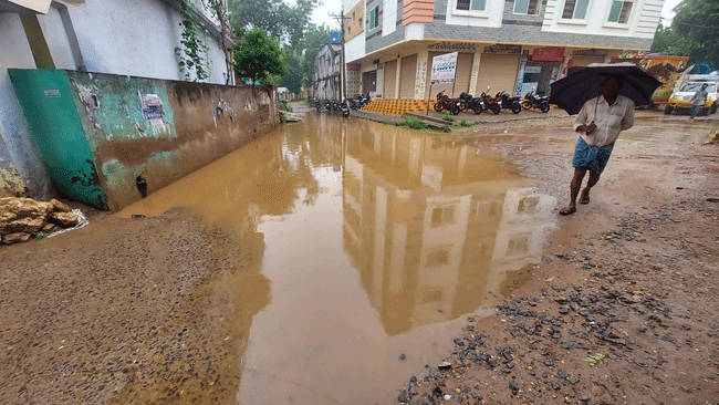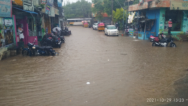 మైదుకూరు రూరల్, అక్టోబరు 29: మైదుకూ రు మున్సిపాలిటీ, మండలంలో శుక్రవారం ఉదయం నుంచి ఎడతెరిపి లేకుండా వర్షం కురుస్తోంది. మున్సిపాలిటీ పరిధి వీధులన్నీ దాదాపు వర్షపునీటితో నిండిపోయాయి. మం డలంలో వరి, మిరప, టమోటా పంటలు అకాల వర్షంతో దెబ్బతుంటున్నాయని రైతు లు వాపోతున్నారు. గ్రామాల్లోని వీధుల్లో దో మల వ్యాప్తి విపరీతంగా ఉందని, విషజ్వరా లు వస్తున్నాయని గ్రామస్తులు వాపోతున్నా రు. వర్షంలో రోగాలు మరింత వ్యాప్తి చెందు తాయని ప్రజలు ఆందోళన చెందుతున్నారు.