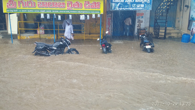 పులివెందుల టౌన్/ రూరల్, అక్టోబరు 29: పులివెందులలో భారీ వర్షం కురిసింది. శుక్ర వారం ఉదయం 10గంటల నుంచి మధ్యా హ్నం 2:30 వరకు ఏకధాటిగా వర్షం కురి సింది. కాస్తంత తెరపిచ్చినా సాయంత్రం 4:30గంటల నుంచి రాత్రి 8 వరకు వర్షం కురవడంతో అత్యధికంగా 60మిల్లీమీటర్ల వ ర్షపాతం నమోదైనట్లు ఆటో మేటిక్ రెయిన్ ఫాల్ అధికారులు తెలిపారు. దీంతో పార్నప ల్లె బస్టాండ్, వేంకటేశ్వరస్వామి ఆలయం, యూనియన్ బ్యాంక్ ఎదురుగా, ఆర్టీసీ బస్టాండ్లలో దాదాపు మోకాటిలోతు వర్షపు నీరు ప్రవహించాయి. డిగ్రీ కళాశాలకు వెళ్లే రోడ్డులో మ్యాన్హోల్ నుంచి నీరు ఉప్పొంగి ప్రవహించింది. ఇదిలా ఉండగా సాగులో ఉన్న బుడ్డశనగ, వేరు శనగ, పొద్దుతిరుగుడు తది తర పంటలకు తీవ్ర నష్టం వాటిల్లే అవకా శం ఉందని రైతులు అభిప్రాయపడుతున్నారు.