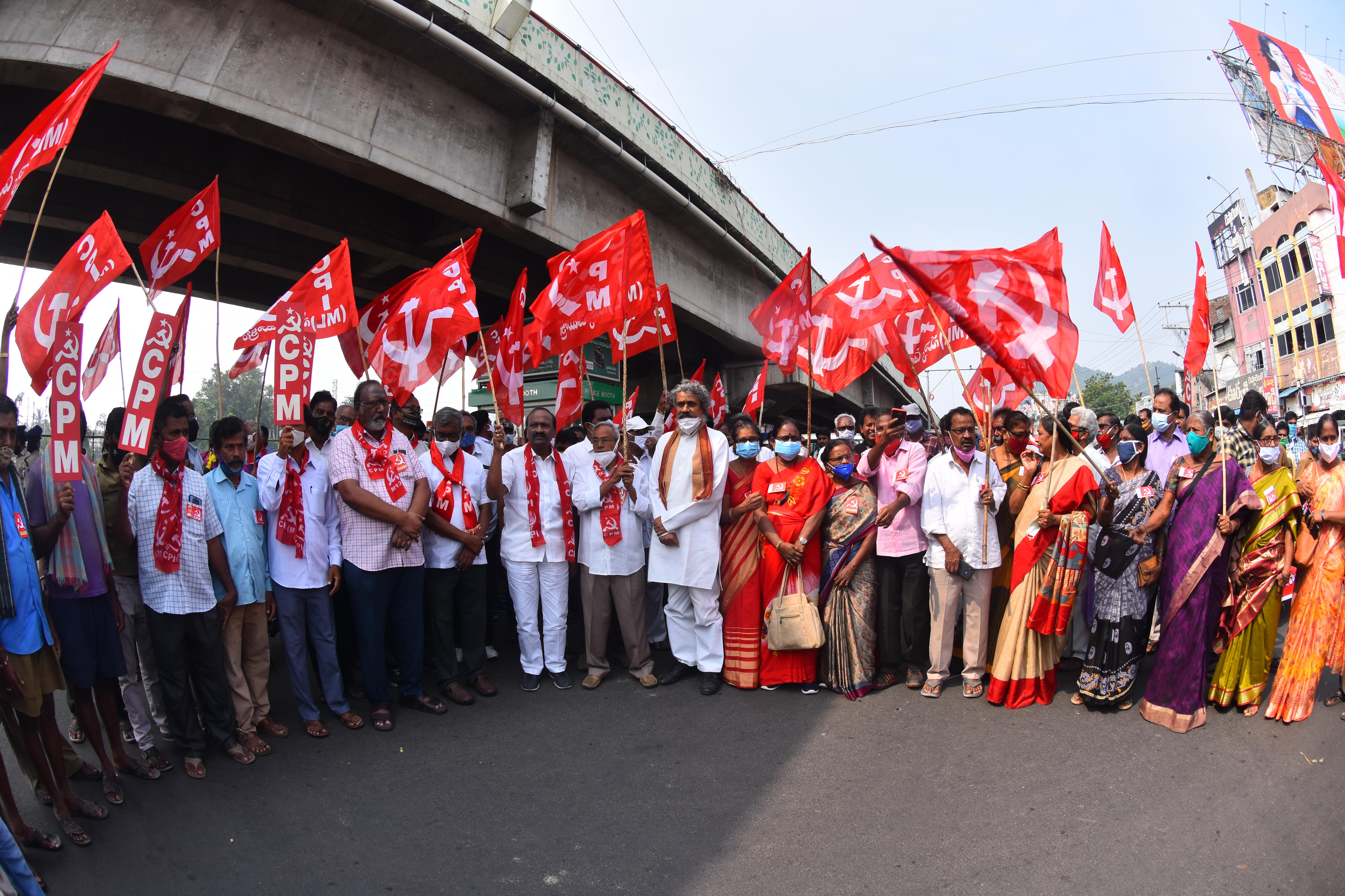 అధిక ధరలపై ఆగ్రహం వ్యక్తం చేస్తూ, ఎర్రదండు రోడ్డెక్కింది.