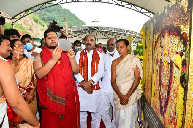 విజయవాడ, అక్టోబరు 29 (ఆంధ్రజ్యోతి) : విశాఖ శారదా పీఠం ఉత్తరాధికారి స్వాత్మానందేంద్ర సరస్వతిస్వామి శుక్రవారం ఇంద్రకీలాద్రిపై దుర్గమ్మను దర్శించుకున్నారు. మంత్రి వెలంపల్లి శ్రీనివాసరావు, ప్రిన్సిపల్ సెక్రటరీ డాక్టర్ జి.వాణీమోహన్, దుర్గగుడి ఈవో భ్రమరాంబ, పాలకమండలి చైర్మన్ పైలా సోమినాయుడు, వైదిక కమిటీ సభ్యులు ఆలయ మర్యాదలతో స్వామికి స్వాగతం పలికారు. స్వామీజీ అమ్మవారిని దర్శించుకుని ప్రత్యేక పూజలు నిర్వహిం చారు. అనంతరం మీడియాతో మాట్లాడుతూ దేశం సుభిక్షంగా ఉండాలని, ప్రజలు సుఖసంతోషాలతో జీవించేలా ఆశీర్వదించాలని అమ్మవారిని కోరుకున్నానన్నారు. అనంతరం ఘాట్రోడ్డులో దుర్గమ్మ చరిత్రను వివరించే ఆగ్మెంటెడ్ రియాలిటీ చిత్రాలను స్వాత్మానందేంద్ర స్వామి ప్రారంభించారు.