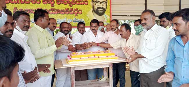 ఎమ్మిగనూరు: టీడీపీ జాతీయ అధ్యక్షుడు, మాజీ ముఖ్యమంత్రి చంద్రబాబు జన్మదిన వేడుకలను ఎమ్మిగనూరులోని టీడీపీ కార్యాలయంలో నాయకులు, కార్యకర్తలు మంగళవారం ఘనంగా నిర్వహించారు. మున్సిపల్ మాజీ వైస్చైర్మన్ కొండయ్య చౌదరి కేక్ కట్చేసి మిఠాయిలు పంచి సంబరాలు జరుపుకున్నారు. కార్యక్రమంలో నాయకులు రామదాసుగౌడ్, మిఠాయి నరసింహులు, హరిప్రసాద్రెడ్డి, ఫారుక్, కఠారి రాజేంద్ర, రంగన్న, రంగస్వామిగౌడ్, శ్రీనివాసులు, రామకృష్ణ, కృష్ణ, నందమూరి ఫ్యాన్స్ చంద్ర, రమేష్ పాల్గొన్నారు.
