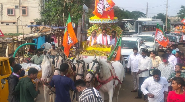 కావలిటౌన్, జనవరి7: బీజేపీతోనే బీసీలకు రాజ్యాధికారం సిద్ధిస్తుందని బీజేపీ ఓబీసీ రాష్ట్ర ఉపాధ్యక్షుడు పసుపులేటి సుధాకర్ పేర్కొన్నారు. బీజేపీ ఓబీసీ సెల్ రాష్ట్ర ఉపాధ్యక్షుడిగా నియమితులై గురువారం కావలికి చేరుకున్న పసుపులేటికి జీజేపీ కార్యకర్తలు, నాయకులు, పసుపులేటి అభిమానులు పట్టణ ఉత్తర శివారులోని మద్దూరుపాడు ట్రంకురోడ్డులో ఘన స్వాగతం పలికారు. అక్కడి నుంచి భారీ బైక్ ర్యాలీగా వారు వెంటరాగా ర్యాలీ ముందు భాగాన నాలుగు గుర్రాలతో కూడిన వాహనంలో పసుపులేటి, బీజేపీ జిల్లా అధ్యక్షుడు జీ భరత్ కుమార్, పట్టణ అధ్యక్షుడు కె బ్రహ్మానందంతో కలిసి ప్రజలకు అభివాదం చేస్తూ ముందుకుసాగారు. బ్రిడ్జి కూడలిలో టాప్లెస్ జీప్పై నుంచి పసుపులేటి మాట్లాడుతూ అన్ని పార్టీలు ప్రజలను మభ్యపెట్టి అధికారంలోకొచ్చి వారి పబ్బం గడుపుకున్నారేగానీ ప్రజా సంక్షేమం గురించి చేసిందేమీ లేదన్నారు. బీసీలందరూ ఏకమై దేశ ప్రదాని నరేంద్ర మోదీ నాయకత్వంలోని బీజేపీతో జతకట్టాలని, బీజేపీని బలోపేతం చేయాలని పిలుపునిచ్చారు. కావలి ఎమ్మెల్యేపై, వైసీపీ ప్రభుత్వంపై బీజేపీ జిల్లా అధ్యక్షుడు భరత్ ధ్వజమెత్తారు. పట్టణ దక్షిణ శివారులోని పమిడి స్కూల్ వరకు ర్యాలీ కొనసాగింది. బృందావనం కాలనీవద్ద బీజేపీ పట్టణ ఉపాధ్యక్షుడు పొన్నగంటి మురళీకృష్ణ ఆధ్వర్యంలో స్వాగతం పలికారు. కార్యక్రమంలో బీజేపీ మహిళామోర్చా జిల్లా ప్రధాన కార్యదర్శి పాలడుగు సుభాషిణి, పసుపులేటి వెంకటేశ్వర్లు, గుర్రంకొండ అరుణ్, రాజ్యలక్షి, వెంకయ్య, దామోదర్ నాయుడు, ప్రసన్న తదితరులు పాల్గొన్నారు.