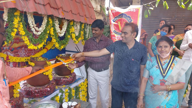 పొదలకూరు, ఏప్రిల్ 4: పట్టణంలోని వాసవీ వనితా క్లబ్ ఆధ్వర్యంలో ప్రజల దాహార్తిని తీర్చేందుకు అమరా బ్రదర్స్ వద్ద మజ్జిగ చలివేంద్రాన్ని ఏర్పాటు చేశారు. ఆదివారం స్థానిక సీఐ గంగాధరరావు చలివేంద్రాన్ని ప్రారంభించి, అనంతరం మాట్లాడుతూ ఎండలు ఎక్కువగా ఉన్న ఈ వేసవిలో మజ్జిగ చలివేంద్రాన్ని ఏర్పాటు చేయడం శుభపరిణామన్నారు. ఈ క్రమంలో వాసవీక్లబ్ వారిని అభినందించారు. వాసవీ వనిత క్లబ్ అధ్యక్షురాలు అమరా వెంకట సుప్రజ మాట్లాడుతూ పట్టణానికి వచ్చే రైతులు, విద్యార్థులు, సామాన్య ప్రజలు తాగునీటి కోసం పడుతున్న ఇబ్బందులను దృష్టిలో పెట్టుకుని ప్రతి ఏడాది చలివేంద్రాన్ని ఏర్పాటు చేయడం జరుగుతుందన్నారు. కార్యక్రమంలో వనిత క్లబ్ సభ్యులు తన్నీరు భారతి, నున్నా విజయలక్ష్మి, క్లబ్ సభ్యులు పాల్గొన్నారు.