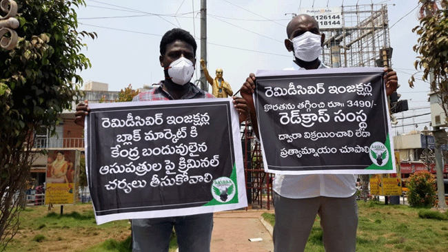 రెమ్డిసివిర్ బ్లాక్మార్కెట్పై నిరసన