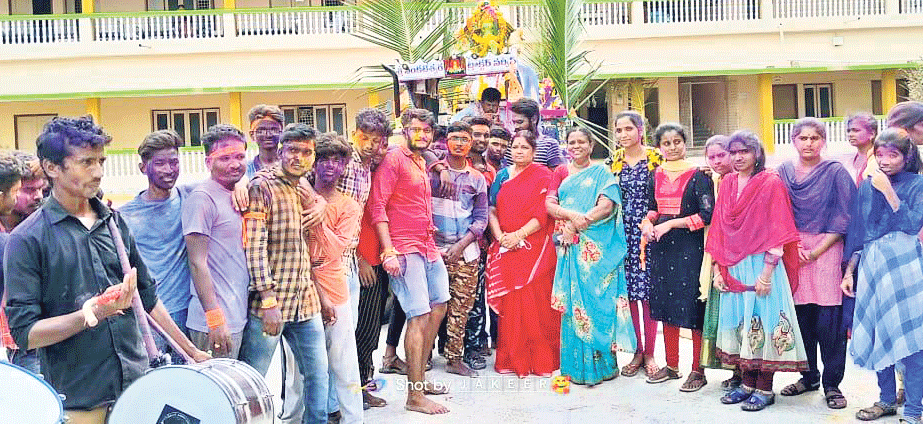 మార్కాపురం(వన్టౌన్) : స్థానిక వీహెచ్ఆర్ విద్యా సంస్థల్లో ఏర్పాటు చేసిన వినాయకుడిని ఆదివారం నిమజ్జనానికి తరలించారు. ఈ సందర్భంగా కళాశాల చైర్మన్ వెన్నా ఇందిరా మాట్లాడుతూ పండుగలు ఐకమత్యానికి చిహ్నాలన్నారు. అనంతరం భక్తి శ్రద్ధలతో నిమజ్జన కార్యక్రమం నిర్వహించారు.