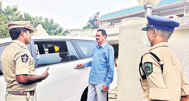 పరవాడ, అక్టోబరు 20: తెలుగుదేశం పార్టీ సీనియర్ నేత, మాజీ మంత్రి బండారు సత్యనారాయణమూర్తిని బుధవారం ఉద యం పరవాడ పోలీసులు హౌస్ అరెస్ట్ చేశారు. టీడీపీ కేంద్ర కార్యాలయం, రాష్ట్రం లోని పార్టీ కార్యాలయాలపై వైసీపీ శ్రేణులు మంగళవారం చేపట్టిన దాడులకు నిరసనగా టీడీపీ అధినేత, మాజీ ముఖ్యమంత్రి చంద్రబాబునాయుడు బుధవారం రాష్ట్ర బంద్కు పిలుపునిచ్చిన నేపథ్యంలో బండారు సత్యనారాయణమూర్తి బుధవారం ఉదయం ఎనిమిది గంటల ప్రాంతంలో తన వాహనంలో బయటకు వెళ్లేందుకు సిద్ధమవ్వగా.. పరవాడ సీఐ పి.ఈశ్వరరావు తమ సిబ్బందితో కలిసి అడ్డుకున్నారు. ఎట్టి పరిస్థితుల్లోనూ బయటకు వెళ్లడానికి వీళ్లేదని, శాంతిభద్రతలను దృష్టిలో పెట్టుకుని ముందస్తుగా హౌస్ అరెస్టు చేస్తున్నామని సీఐ వివరించారు. దీంతో బండారు వాహనం దిగి ఇంట్లోకి వెళ్లిపోయారు. సీఐ తమ సిబ్బందిని బండారు ఇంటి గేటు వద్ద కాపలాగా ఉంచారు.