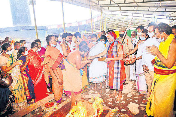 కోటవురట్ల, అక్టోబరు 28: పాములవాక గ్రామంలోని పట్టాలమ్మ నవదుర్గల అంకాలమ్మ ఆలయం ఆవరణలో గురువారం నూతనంగా ఏర్పాటు చేసిన పలు విగ్రహాల ప్రతిష్ఠాపన కార్యక్రమం వైభవోపేతంగా జరిగింది. ఈ కార్యక్రమానికి విశాఖ శారదా పీఠాధిపతి స్వరూపానందేంద్ర సరస్వతి, ఉత్తర పీఠాధిపతి స్వాత్మానంద్రేంద్ర సరస్వతి విశిష్ట అతిథులుగా హాజరయ్యారు. దేవస్థానం ధర్మకర్త ఎస్వీ రమణ నేతృత్వంలో సుమారు రూ.20 లక్షలు వెచ్చించి అష్టాదశ శక్తిపీఠాలు, ద్వాదశ జ్యోతిర్లింగాలు, మహాశివలింగం, మహానంది, తదితర విగ్రహాలను ప్రతిష్ఠించి ప్రత్యేక పూజలు, హోమాలు నిర్వహించారు. ఈ కార్యక్రమంలో నర్సీపట్నం మాజీ ఎమ్మెల్యే వేచలపు శ్రీరామ్మూర్తి, తదితరులు పాల్గొన్నారు.