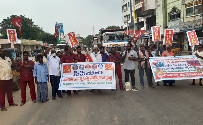 దేవరపల్లి, అక్టోబరు 29: పెట్రోలు, గ్యాస్, డీజిల్ ధరలు తగ్గించాలని సీపీఎం ఆధ్వర్యంలో శుక్రవారం రాస్తారోకో నిర్వహించారు. ఉండవల్లి కృష్ణారావు మాట్లాడుతూ పెట్రో ధరలతో సామాన్య, మధ్య తరగతి ప్రజలపై తీవ్ర భారం పడిందన్నారు. నిత్యావసర సరుకుల ధరలు కూడా పెరిగిపోతు న్నాయని ఆందోళన వ్యక్తం చేశారు. కార్పొరేట్ సంస్థలకు లక్షల, కోట్లు రాయి తీలు ఇస్తూ సామాన్యులపై భారం వేయడం దుర్మార్గ మన్నారు. పిచ్చుకల సోమసుందరం, పిన్నమనేని సత్యనారాయణ, రత్నాజీ, మడెల్ల రామారావు, ఎస్.భగత్, నీలం రామారావు పాల్గొన్నారు.