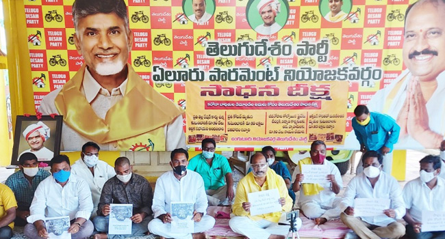 ఏలూరు: రాష్ట్రంలో కరోనా మహమ్మారి వలన ఆర్థికంగా నష్టపోయిన కుటుంబాలను ప్రభుత్వం ఆదుకోవాలంటూ ప్రతిపక్ష నేత చంద్రబాబు నాయుడు చేస్తున్న సాధన దీక్షకు మద్దతుగా ఏలూరు పార్లమెంటు తెలుగుదేశం పార్టీ అధ్యక్షుడు, ఉంగుటూరు మాజీ శాసనసభ్యులు గన్ని వీరాంజనేయులు భీమడోలు క్యాంపు కార్యాలయంలో నిరసన దీక్ష చేపట్టారు.