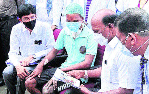 చెన్నై: తూపాకీ తూటా దూసుకుపోవడంతో ఓ కానిస్టేబుల్కు ముఖం నిండా గాయాల వడంతో రాజీవ్గాంధీ ఆస్పత్రిలో చేరారు. దర్మపురి మందుకుళంపట్టికి చెందిన కానిస్టేబుల్ వేలుసామి (27)కి రాజీవ్గాంధీ స్మారక ప్రభుత్వ సర్వజన ఆస్పత్రి వైద్యనిపుణులు ఇటీవల ఏడుగంటల పాటు శ్రమించి శస్త్రచికిత్స చేశారు. ఆస్పత్రిలో చేరినప్పుడు వేలుసామి నోరు, దవడ చీలిన స్థితిలో ఉన్నాడు. ఆస్పతి వైద్యనిపుణులు దానిని చక్కదిద్దారు. ప్రస్తుతం అతను కోలుకుంటున్నాడు. ఈ నేపథ్యంలో గురువారం ఆస్పత్రికి వెళ్లిన ఆరోగ్యశాఖ మంత్రి ఎం.సుబ్రమణ్యం కానిస్టేబుల్ను పరామర్శించారు. శస్త్రచికిత్స చేసిన వైద్య బృందాన్ని ప్రశంసించారు.