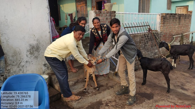 బోథ్ రూరల్, జనవరి 2: నాగుగూడకు చెందిన సో యం సోనేరావుకు చెందిన మేకల మందలో చిన్న మను బోతు పిల్ల గుంపు నుంచి తప్పించుకోని మేకలమందలో చేరింది. వాటితో పాటు గ్రామంలోకి వచ్చింది. దీనిని గమ నించిన సోనేరావు అటవీ అధికారులకు సమాచారం అం దించారు. బీట్ అధికారులు నాగోరావు, కే.వినోద్లు దానిని స్వాధీనం చేసుకొని జన్నారం వైల్డ్లైఫ్కు తరలించారు.