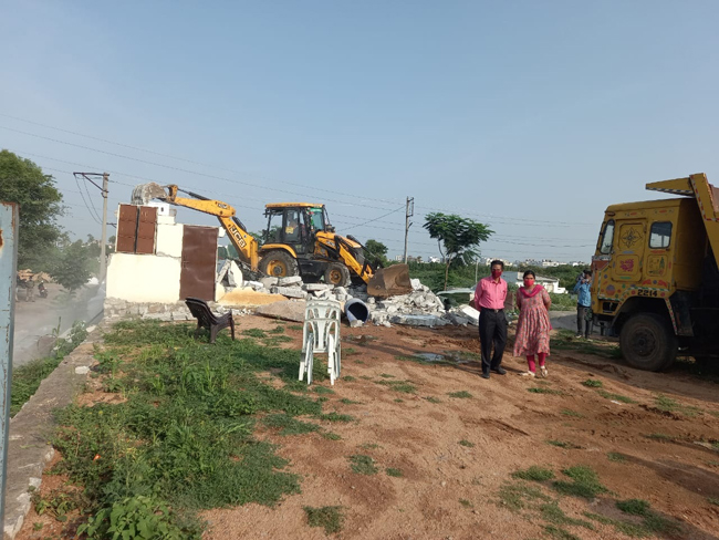 రాజేంద్రనగర్ సర్కిల్ బుద్వేల్ నుంచి ఉప్పర్పల్లి వరకు మూసీ పరీవాహక ప్రాంతం బఫర్జోన్లోని సుమారు నాలుగు ఎకరాల స్థలాన్ని కొందరు కబ్జాకు యత్నించారు. బ్లూ షీట్స్తో ప్రహరీ నిర్మించారు. బుధవారం అధికారులు దాన్ని కూల్చివేయించారు. దాంతో పాటు బుద్వేల్ సర్వేనెంబర్ 89లోని 36 కుంటల ప్రభుత్వ స్థలంలో నిర్మించిన ఐదు గదులను, ప్రహరీని, ఆర్చ్లను నేలమట్టం చేయించారు. కబ్జాకు గురికాకుండా అధికారులు కాపాడిన స్థలాల విలువ సుమారు రూ. 30 కోట్లకు పైగానే ఉంటుందని స్థానికులు అంటున్నారు. ఆర్డీవో కె.చంద్రకళ పర్యవేక్షణలో రాజేంద్రనగర్ తహసీల్దార్ చంద్రశేఖర్గౌడ్ నేతృత్వంలో డిప్యూటీ తహసీల్దార్లు రాజు, రవికుమార్, రెవెన్యూ ఇన్స్పెక్టర్ సారిక ఈ కూల్చివేతల్లో పాల్గొన్నారు.