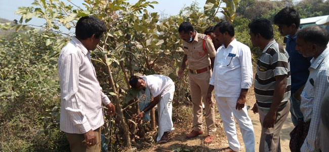 పులి ఆనవాళ్లను పరిశీలిస్తున్న పెద్దపల్లి ఎస్‌ఐ రాజేశ్‌