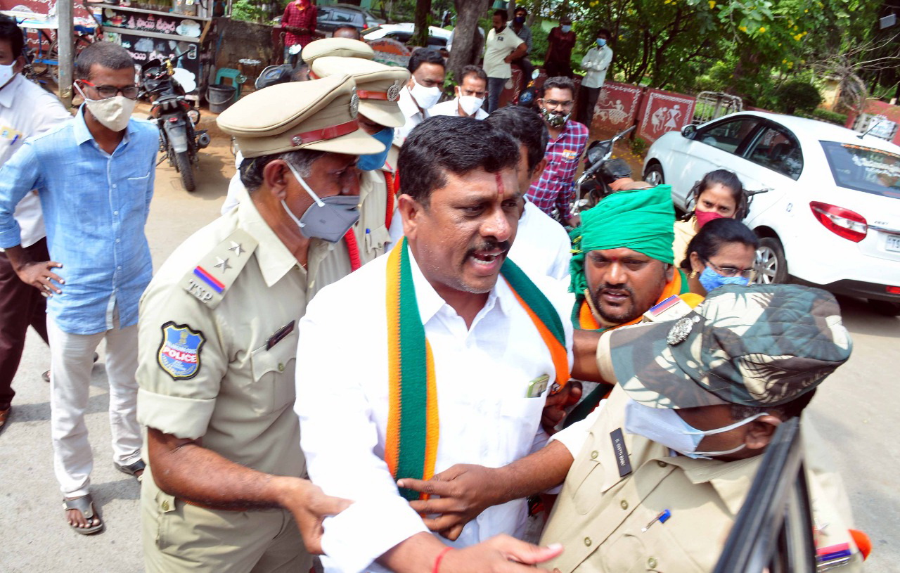 రాష్ట్రంలో వరిసాగు వద్దని, ప్రభుత్వం ఆంక్షలు విధిస్తుందని ప్రభుత్వ నిర్ణయానికి వ్యతిరేకంగా బీజేపీ ఆధ్వర్యంలో ఖమ్మం ఆర్అండ్బీ విశ్రాంతిగృహం వద్ద బీజేపీ నాయకులు, కార్యకర్తలు ప్రభుత్వ దిష్టి బొమ్మ దహనం చేస్తుండగా పోలీసులు అడ్డుకున్నారు.