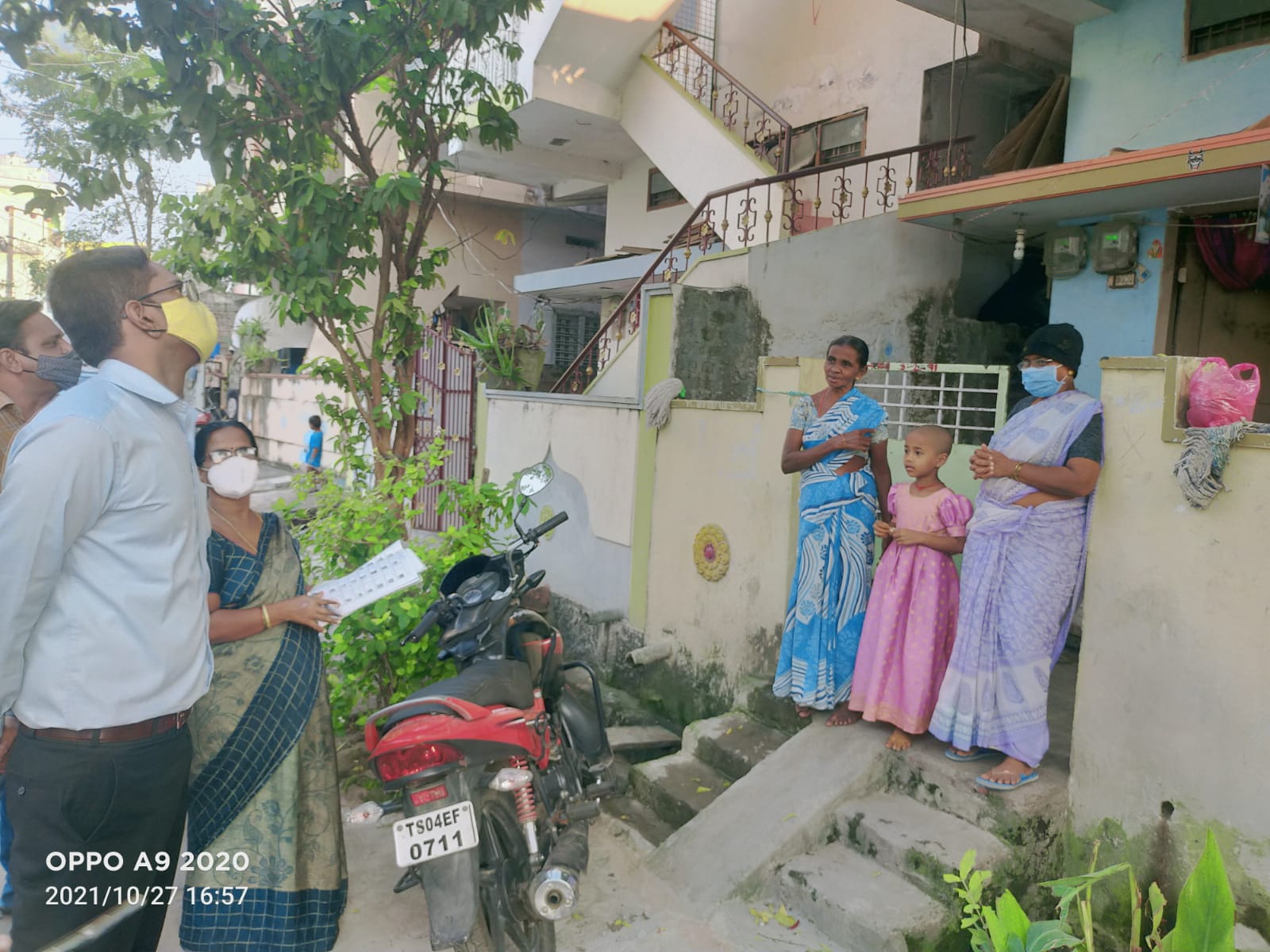 ఖమ్మం కార్పోరేషన్, అక్టోబరు28: మునిసిపల్ కమిషనర్ ఆదర్శ్సురభి ఇంటింటికీ తిరుగుతూ కొవిడ్ టీకాలపై ప్రజలను అప్రమత్తం చేశారు. టీకాలు తీసుకోనివారిని వెంటనే వ్యాక్సినేషన్ కేంద్రాలకు వెళ్లాలని సూచించారు. ప్రతి ఒక్కరూ వ్యాక్సిన్ మొదటి, రెండు డోసులను ఖచ్చితంగా తీసుకోవాలని కోరారు, అనంతరం నగరంలోని ప్రాధమిక ఆరోగ్య కేంద్రాల్లో ఏర్పాటు చేసిన వ్యాక్సినేషన్ కేంద్రాలను సందర్శించారు. రిజిస్టర్లలో పమోదు చేసిన వ్యాక్సిన్ వేసుకున్న వారి వివరాలను పరిశీలించారు. సదరు కేంద్రం పరిధిలో ఎంతమంది ఉన్నారు, ఎంతమంది వ్యాక్సిన్ తీసుకున్నారు, ఎంత వ్యాక్సిన్ అందుబాటులో ఉంది తదితర వివరాలను వైద్య, ఆరోగ్యశాఖ సిబ్బందిని అడిగి తెలుసుకున్నారు.