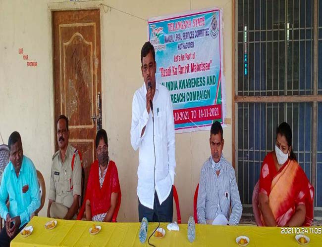 కొత్తగూడెం టౌన్, అక్టోబరు 24: ప్రతిఒక్కరూ చట్టాలపై అవగాహన కలిగినప్పుడే దేశ సౌరభౌమాధికారం సిద్దిస్తుందని కొత్తగూడె ం అదనపు సీనియర్ సివిల్ న్యాయమూర్తి శ్రీనివాస్ అన్నారు. ఆదివారం మండల లీగల్ సర్వీసెస్ కమిటీ కొత్త గూ డెం ఆధ్వర్యంలో రామవరం సత్యసాయి సేవా సమితి హాల్లో ఐక్యరాజ్యసమితి దినోత్సవం సందర్బంగా న్యాయచైతన్య సద స్సును నిర్వహించారు. ఈ కార్యక్రమానికి ముఖ్య అతిఽథిగా వి చ్చేసిన న్యాయమూర్తి మాట్లాడుతూ.. ప్రపంచదేశాల మధ్య శాంతిని నెలకొల్పేందుకు 24 అక్టోబరు 1945న ఐక్యరాజ్యస మితిని స్థాపించారని, ప్రతి దేశంలో స్త్రీలకు ఉన్న హక్కులను రక్షించేందుకు అనేక చట్టాలకు రూపకల్పన చేశారన్నారు. అ జాద్ క అమృత్ మహోత్సవం ద్వారా గ్రామాల్లో న్యాయ అవగా హన కార్యక్రమాలు నిర్వహిస్తున్నారన్నారు. విధ్యార్ధినీలకు న్యాయ వ్యవస్థలో ఉన్న సివిల్, క్రిమినల్ కేసులపై అవగాహన కల్పించారు. బాలికలు వారికున్న సందేహాలను నివృత్తి చేసు కుంటూ ఉన్నత శిఖరాలను అదిరోహించాలని కోరారు. రూ. లక్ష లోపు వార్షిక ఆదాయం కలిగిన మహిళలు, వృద్దులు, దివ్యాంగులకు న్యాయపరమైన సమస్యలుంటే మండల లీగల్ సర్వీసెస్ కమిటీ కొత్తగూడెం వారికి ధరఖాస్తుచేస్తే న్యాయం చే స్తామని హామీ ఇచ్చారు. సీనియర్ న్యాయవాధి రమేష్ మక్కడ్ ఐక్యరాజ్య సమితి ఆవిర్బావం, విధులు, ప్రపంచ ఆరోగ్య సంస్థ గురించి అవగాహన కల్పించారు. ఈ కార్యక్రమంలో మానిట రింగ్ కమిటీ మెంబర్ రాజముల్లు, న్యాయవాధి, మాజీ కౌన్సిలర్ వెంకటేశ్వర్లు, పార లీగల్ వాలంటరీ రాజమణి, లక్ష్మి, టూటౌన్ ఎస్.సెల్వరాజు, తదితరులు పాల్గొన్నారు.