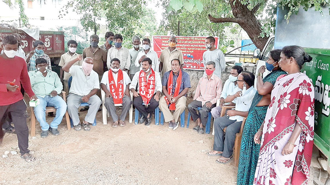 మక్తల్ : మునిసిపల్ కార్మికులకు 30శాతం ఫిట్మెంట్ ఇవ్వాలంటూ తెలంగాణ ప్రగతిశీల మునిసిపల్ వర్కర్స్ యూనియన్ కమిటీ ఆధ్వర్యంలో సోమవారం చలో హైదరాబాద్ కార్యక్రమాన్ని విజయవంతం చేయాలని ఐఎఫ్టీయూ జిల్లా అధ్యక్షుడు కిరణ్ పిలుపునిచ్చారు. ఆదివారం మక్తల్ మునిసాలిటీ ఆవరణలో ఏర్పాటు చేసిన విలేకరుల సమావేశంలో ఆయన మాట్లాడుతూ ఫిట్మెంట్ కోసం విడుదల చేసిన జీవో నెం.60ద్వారా మునిసిపల్ కార్మికులకు తీవ్ర అన్యాయం జరుగుతుందన్నారు. 2014లో ప్రకటించిన 10వ పీఆర్సీ ప్రకారం 30శాతం అమలుపర్చాలని నిర్ణయం తీసుకుందన్నారు. అప్పటి నుంచి నేటి వరకు ఫిట్మెంట్ ఇవ్వకుండా కార్మికులకు అన్యాయం చేస్తుందన్నారు. కార్యక్రమంలో మునిసల్ వర్కర్స్ యూనియన్ నాయకులు ఈశ్వరయ్య, రాములు, శంశుద్దీన్, మూర్తి, మారెప్ప, కృష్ణయ్య, రాజు, రామలింగప్ప, గంగన్న, నర్సిములు, బాలస్వామి, అమ్మక్క, మహేశ్వరమ్మ, ఆశన్న పాల్గొన్నారు.