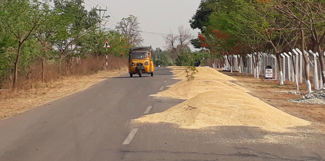 రోడ్డుపై ధాన్యం నూర్పిళ్లతో పొంచి ఉన్న ప్రమాదం