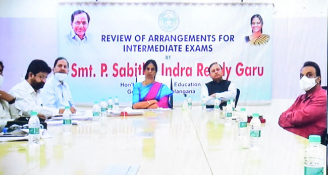 ఇంటర్మీడియట్ పరీక్షలకు పకడ్బందీ ఏర్పాట్లు చేయాలని విద్యాశాఖ మంత్రి సబితాఇంద్రారెడ్డి జిల్లా కలెక్టర్లకు సూచించారు. ఈ నెల 25 నుంచి ప్రారంభంకానున్న ఇంటర్ పరీక్షల నిర్వహణపై గురువారం ఆమె కలెక్టర్లతో వీడియో కాన్ఫరెన్స్ నిర్వహించారు. ఈ సందర్భంగా మంత్రి మాట్లాడుతూ విద్యార్థి దశకు ఇంటర్మీడియట్ ఒక మలుపు అని, అందుకే పరీక్షలు నిర్వహించాలని నిర్ణయించామని స్పష్టం చేశారు. కరోనా కలకలం నేపథ్యంలో సుదీర్ఘ విరామం అనంతరం పరీక్షలు