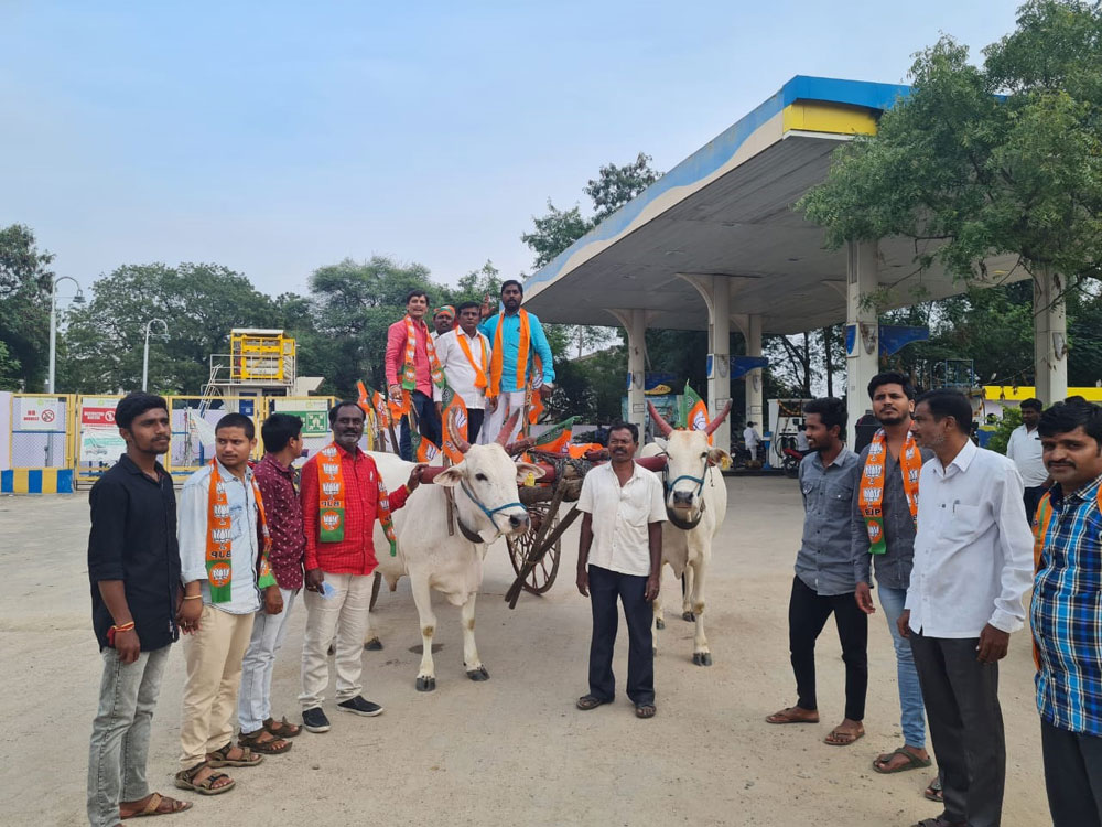 చిల్పచెడ్: రాష్ట్ర ప్రభుత్వం పెట్రోల్, డీజిల్పై వ్యాట్ తగ్గించాలని బీజేపీ మండలాధ్యక్షుడు దశరథ ఆధ్వర్యంలో వినూత్నంగా ఎడ్లబండ్లతో ర్యాలీ నిర్వహించి తహసీల్దార్ సహదేవ్కు వినతిపత్రం అందజేశారు. నిరసనలో జిల్లా ఎస్టీమోర్చా ఉపాధ్యఽక్షుడు కిషన్నాయక్, మండల ప్రధాన కార్యదర్శి సంతో్షకుమార్, ఉపాధ్యక్షుడు శ్రీనివాస్, యువమోర్చా అధ్యక్షుడు సతీష్, కార్యదర్శి హరీశ్, సీనియర్ నాయకులు మొగులయ్య, బాల్రాజ్, అశోక్ తదితరులు ఉన్నారు.