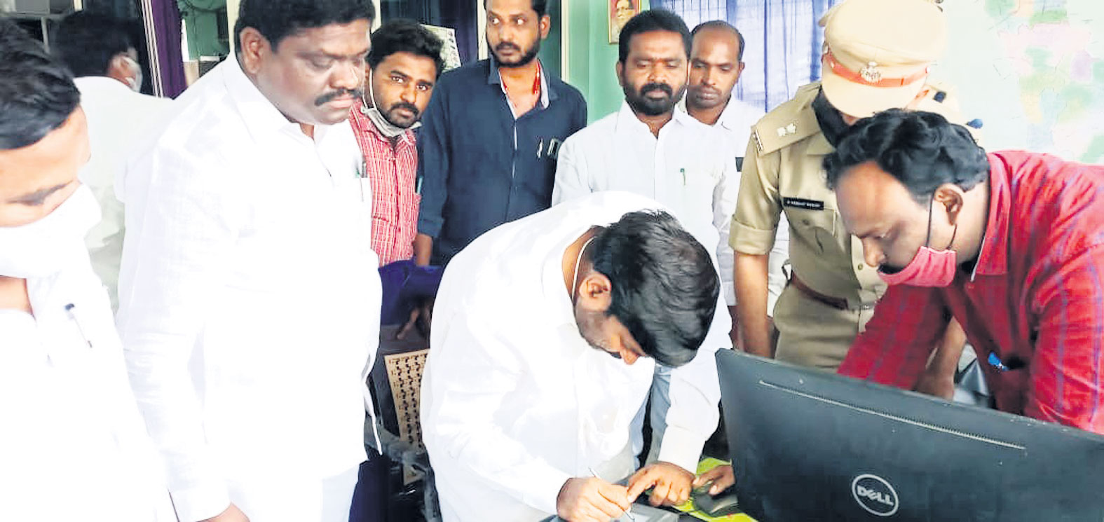 జిల్లా రవాణా శాఖ కార్యాలయానికి మంత్రి గుంటకండ్ల జగదీ్షరెడ్డి గురువారం వెళ్లారు. తన వాహన రుణ క్లియరెన్స్ కోసం ఏ ఆర్భాటం లేకుండా అందరిలాగానే అధికారి దగ్గరికి వెళ్లి ఫైల్స్పై సంతకం చేసి ఫొటో దిగారు.