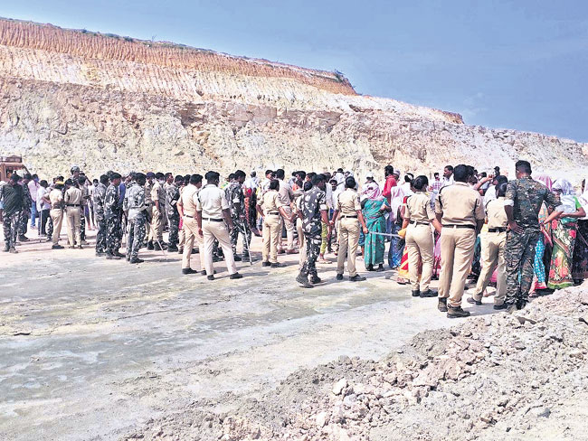 మల్హర్, అక్టోబరు 20 : జయశంకర్ భూపాలపల్లి జిల్లా మల్హర్ మం డలం తాడిచర్ల ఓపెన్కాస్ట్ ప్రాజెక్టు వద్ద బుధవారం ఉద్రిక్తత వాతావరణం చోటుచేసుకుంది. జెన్కో అధికారులు తమకు ఇచ్చిన హామీని నెరవేర్చాలని తాడిచర్ల, కాపురం గ్రామాలకు చెందిన భూ నిర్వాసితులు ధర్నాకు దిగారు. భూ నిర్వాసితులకు ఉద్యోగ అవకాశం, డేంజర్ జోన్లోని ఇళ్ల సేకరణతో పా టు పరిహారం, పునరావాసం, మిగులు భూములు సేకరణపై స్పష్టత ఇవ్వా లని డిమాండ్ చేస్తూ బొగ్గు వెలికితీతను అడ్డుకున్నారు. నిర్వాసిత కమిటీ సభ్యులు పలువురిని పోలీసులు ముందస్తుగా మంగళవారం రాత్రి అదుపు లోకి తీసుకుని కొయ్యూర్ స్టేషన్కు తరలించారు. అలాగే ఓసీపీ వద్ద సుమా రు వంద మంది పోలీసులతో బందోబస్తు ఏర్పాటు చేశారు. ఓసీపీ పనుల ను అడ్డుకోవడానికి అటు వైపు వెళ్లిన వారిని పోలీసులు అడ్డుకొని తిరిగి ఇళ్లలోకి పంపించారు. ఈ క్రమంలోనే గ్రామానికి చెందిన కొందరు యువకు లు ఓసీపీ వద్దకు చేరుకొని పనులను అడ్డుకున్నారు. దీంతో సుమారు 20 నిమిషాల పాటు బొగ్గు వెలికితీత నిలిచిపోయింది. విషయం తెలుసుకున్న పోలీసులు వారిని అక్కడి నుంచి వాహనంలో కొయ్యూర్ పోలీస్స్టేషన్కు తరలించారు. పోలీసులు ఎక్కడికక్కడ అడ్డుకోవడంతో నిర్వాసితులు స్థానిక గ్రామ పంచాయతీ కార్యాలయానికి చేరుకున్నారు. అక్కడే ఉన్న ఎస్సై సత్య నారాయణ వారిని నచ్చజెప్పే ప్రయత్నం చేశారు. తహసీల్దార్ శ్రీనివాస్ సైతం గ్రామపంచాయతీ కార్యాలయం వద్దకు చేరుకొని నిర్వాసితులతో మా ట్లాడారు. వారం రోజుల్లో ఇళ్ల సేకరణకు సంబంధించిన సర్వేను ప్రారంభి స్తామని హామీ ఇచ్చారు. అయినా నిర్వాసితులు ససేమిరా అంటూ అక్కడి నుంచి సుమారు రెండు వందల మంది ఓసీపీ వైపు బయల్దేరారు. ఓసీపీ లోకి దూసుకొని వెళ్లగా పోలీసులు వారిని అడ్డుకున్నారు. దీంతో కాసేపు ఉద్రిక్త వాతావరణం చోటు చేసుకుంది. సుమారు రెండు గంటల పాటు ని ర్వాసితులు మైన్లోనే ఉండటంతో పనులు నిలిచిపోయాయి. జెన్కో, రెవె న్యూ అధికారుల మాటలు నమ్మి తాము మోసపోయామని నిర్వాసితులు విమర్శించారు. ఓసీపీలో నిత్యం జరిగే బ్లాస్టింగులతో ఇళ్లు బీటలు వారుతు న్నాయని, ఎప్పుడు ఏం ప్రమాదం సంభవిస్తుందో తెలియక బిక్కుబిక్కుమం టూ కాలం వెళ్లదీస్తున్నామని ఆవేదన వ్యక్తం చేశారు. ఈ క్రమంలో కాటా రం డీఎస్పీ బోనాల కిషన్ అక్కడికి చేరుకొని ముందుగా స్థానికులకు ఉద్యో గ అవకాశాలకు సంబంధించి ప్రాజెక్టు హెడ్ ప్రభాకర్ రెడ్డితో మాట్లాడిం చారు. మరో మూడు నెలల్లో సీహెచ్పీ పనులు పూర్తికాగానే ఉద్యోగాలు క ల్పించే అవకాశం ఏర్పడుతుందని ఆయన తెలిపారు. జెన్కో అధికారులతో మాట్లాడగా వారం రోజుల్లో ఇళ్ల సర్వేకు సంబంధించిన ప్రక్రియ ప్రారంభిం చనున్నట్లు అధికారులు తెలపడంతో భూ నిర్వాసితులు వెనుతిర