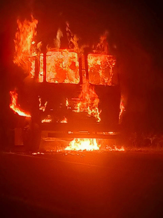 మంటల్లో గ్యాస్ సిలిండర్ల లారీ