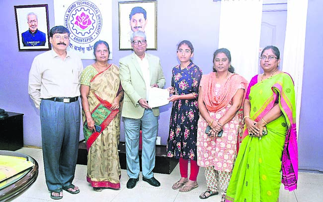 అనంతపురం సెంట్రల్, అక్టోబరు 12: జేఎనటీయూ విద్యార్థిని హరిప్రియ రూ.45 లక్షల వార్షిక వేతన ఉద్యోగానికి ఎంపికైంది. ఈ ఏడాది బీటెక్ కంప్యూటర్ సైన్స ఇంజనీరింగ్ పూర్తిచేసిన హరిప్రియ, ఈ-కామర్స్ సంస్థ అమెజానలో ఉద్యోగం సాధించింది. ఆమెను వీసీ రంగజనార్దన బుధవారం అభినందించారు. జేఎనటీయూ ఆధ్వర్యంలో ప్రతి విద్యార్థి ఉద్యోగాలు సాధించేలా ప్రత్యేక శిక్షణా తరగతులు నిర్వహిస్తున్నామని వీసీ తెలిపారు. అత్యధిక వార్షిక వేతనాలు పొందుతూ.. వర్సిటీ ఖ్యాతిని తమ విద్యార్థులు పెంచుతున్నారని హర్షం వ్యక్తం చేశారు. కార్యక్రమంలో మాజీ వీసీ, సివిల్ ఇంజనీరింగ్ విభాగం ప్రొఫెసర్ సుదర్శన రావు, ప్రిన్సిపాల్ సుజాత, హెచఓడీ మాధవి, ప్లేస్మెంట్ డైరెక్టర్ ప్రొఫెసర్ వసుంధర, ప్లేస్మెంట్ ఆఫీసర్ శ్రీనివాసులు పాల్గొన్నారు.