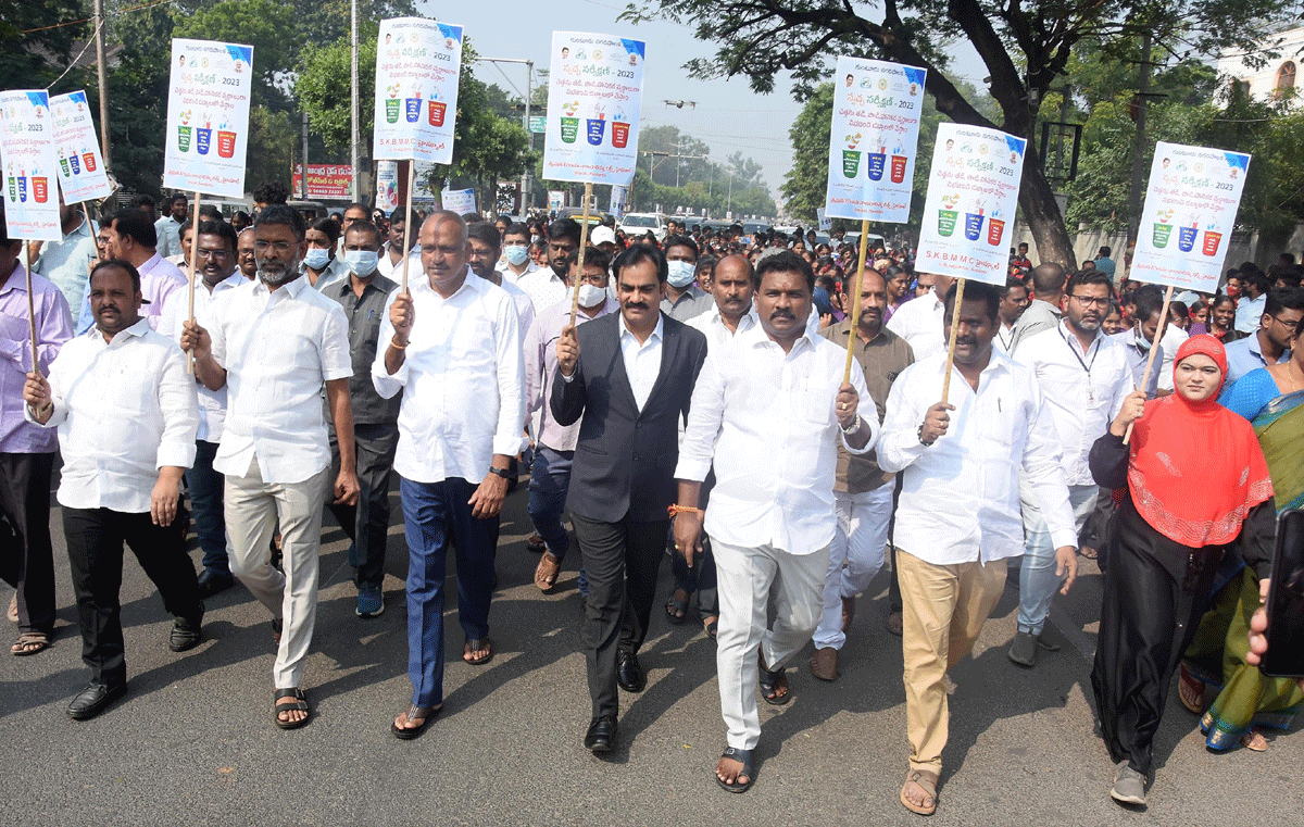 గుంటూరు (కార్పొరేషన్) డిసెంబరు 23: గుంటూరు నగరాన్ని స్వచ్చ, ఆరోగ్యనగరంగా తీర్చిదిద్దుకోవడంలో ప్రతి ఒక్కరూ భాగస్వా మ్యం కావాలని కలెక్టరు ఎం.వేణుగోపాల్ రెడ్డి కోరారు. శుక్రవారం గుంటూరు నగరపాలకసంస్థ ఆధ్వర్యంలో నగరంలో 25 ప్రధాన కూడ ళ్ళలో 130 ప్రభుత్వ, ప్రైవేట్ విద్యాసంస్థల నుంచి 50వేల మంది విద్యా ర్థులతో స్థానిక కార్పొరేటర్లు, నగరపాలక సంస్థ అధికారుల ఆధ్వర్యంలో నగర పరిశుభ్రత, స్వచ్చతపై ర్యాలీలు, మానవహారాలు చేపట్టారు. కలెక్టరేట్ నుంచి నాజ్సెంటర్ వరకు జరిగిన ర్యాలీ, మానవహారం కార్యక్రమంలో కలెక్టరు, ఎమ్మెల్సీ లేళ్ళ అప్పిరెడ్డి, నగర మేయర్ కావటి శివనాగ మనోహర్ నాయుడు, ఎమ్మెల్యే మద్దాలి గిరిధర్, ఇన్చార్జి కమిషనర్ పెద్ది రోజా పాల్గొన్నారు. ఈసందర్భంగా కలెక్టరు మాట్లాడు తూ గుంటూరు నగరాన్ని దేశంలోనే స్వచ్చ నగరంగా అగ్రస్థానంలో నిలబెట్టడంలో ప్రజల భాగస్వామ్యం ఎంతో కీలకమని, అందుకుగాను నగరపాలకసంస్థ చేపట్టే కార్యాక్రమాల్లో ప్రజలు భాగస్వామ్యం కావాల న్నారు. విద్యార్థులు మానవహారంలో ప్లకార్డులు చేతబట్టి, నినాదాలిస్తూ ప్రజలకు అవగాహన కల్పించడానికి ముందుకురావడం అభినందనీయ మన్నారు. మేయర్ మనోహర్నాయుడు మాట్లాడుతూ క్లీన్ గుంటూరు కోసం ప్రజలకు అవగాహన కల్పించడానికి నగరపాలక సంస్థ ప్రత్యేక శ్రద్థ చూపుతుందన్నారు. అధికారులు, ప్రజాప్రతినిధులతో పాటు ప్రజ లు భాగస్వామ్యమైతేనే స్వచ్చనగర సాధన తేలికవుతుందన్నారు. ఎమ్మెల్సీ అప్పిరెడ్డి మాట్లాడుతూ గుంటూరు నగరాన్ని స్వచ్చ నగరంగా మార్చుకోవడమంటే ప్రజారోగ్యాన్ని మెరుగుపరుచుకోవడ మేనని, అందుకు ప్రతి ఒక్కరూ భాధ్యత తీసుకోవాలని కోరారు. ఎమ్మెల్యే మద్దాల గిరిధర్ మాట్లాడుతూ క్లీన్ గుంటూరు ప్రతి ఒక్కరి లక్ష్యం కావాలని, అందుకు ప్రజలతో కలిసి అధికారులు, ప్రజా ప్రతినిధులు ముందుకు రావాలన్నారు.